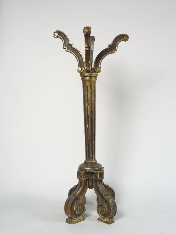 Sellette de style Louis XVI en bois laqué gris et doré. H. 113,5 cm (manques)