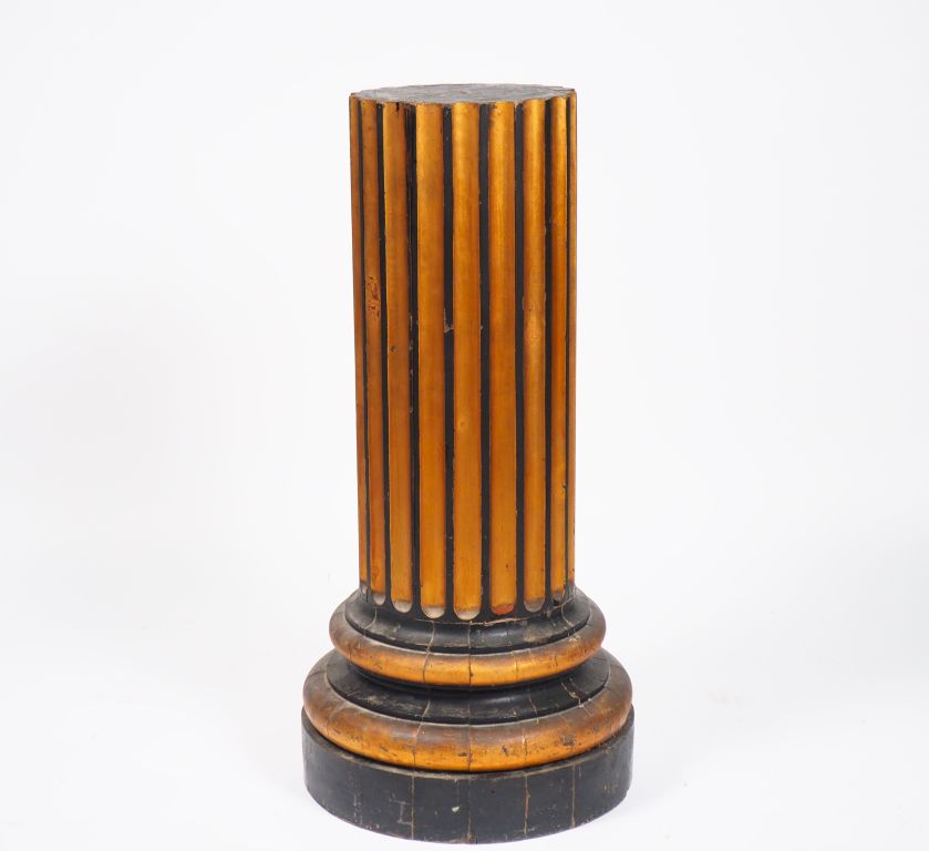 Sellette XIXème en forme de colonne tronquée, cannelée en bois doré et noirci. H. 98 cm