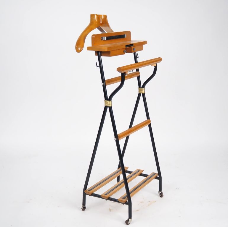 Serviteur muet de marque "GALANTDENUIT" en bois verni et métal. H. 110 cm VENTE SUR DESIGNATION (appartement situé au centre ville de Toulouse, premier étage, facile d'accès, stationnement facilité et possible pour l'enlèvement)