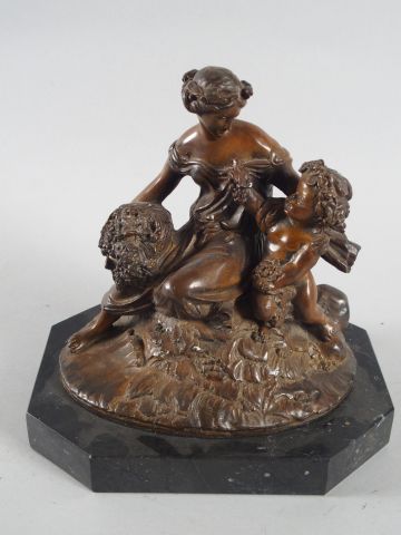 Sujet de style Louis XVI en bronze à patine brune, 'Bacchanale', socle en marbre noir. H. avec le socle : 23 cm