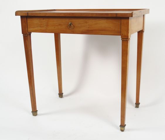 Table à écrire de style Directoire en merisier, ouvrant à un tiroir en ceinture, pieds fuselés.