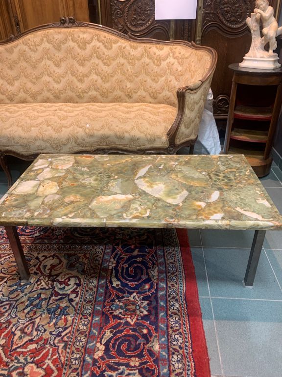 Table basse plateau en aragonite. Dim.du plateau : 110 x 60 cm