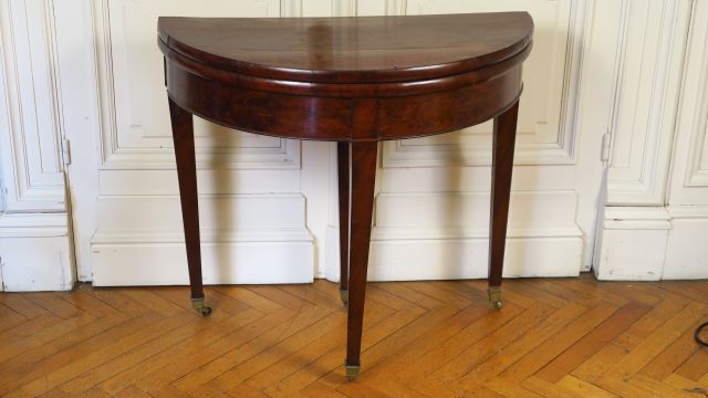 Lot de Table demi- lune Empire en acajou et placage d’acajou (accidents) au prix de 150 à 200 € en vente aux enchères par l'hôtel des ventes Primardeco