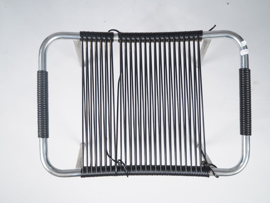 Tabouret scoubidou années 60 en plastique noir et métal chromé.