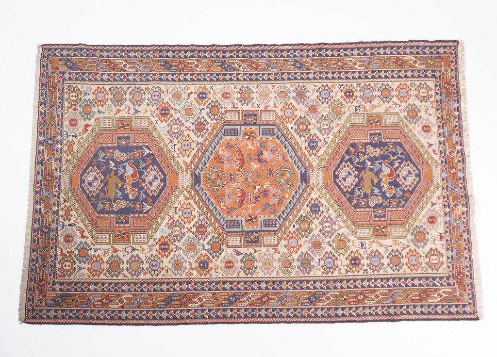 Tapis d'Orient à décor d'animaux et de motifs géométriques. Dim. 200 x 130 cm