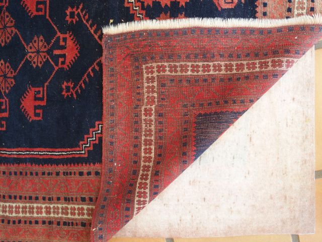 Lot de Tapis d'Orient, fond bleu et rouge. Dim. : 197 x 115 cm au prix de 100 à 150 € en vente aux enchères par l'hôtel des ventes Primardeco