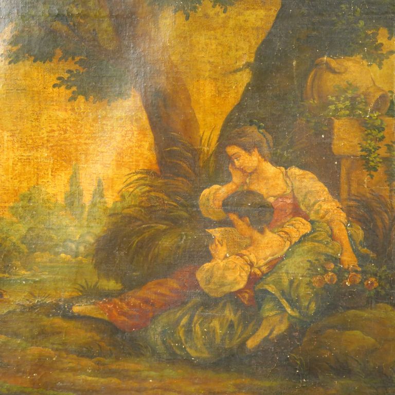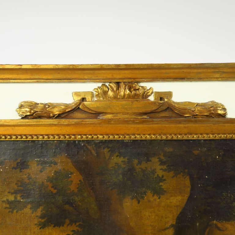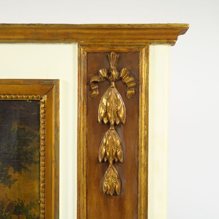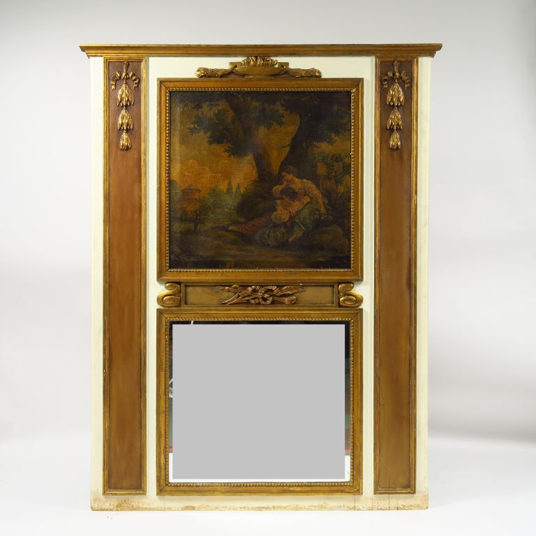 Trumeau XIXème en bois peint et doré, à décor de jeunes filles à la lecture. Dim. : 150 x 116 cm.