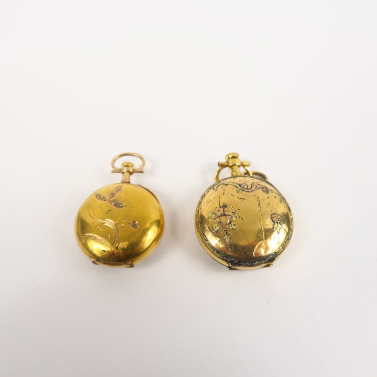 Deux montres de col en or jaune. Poids tel. 24 g
