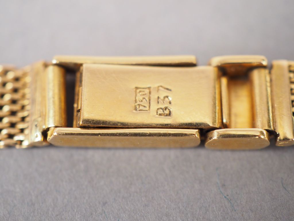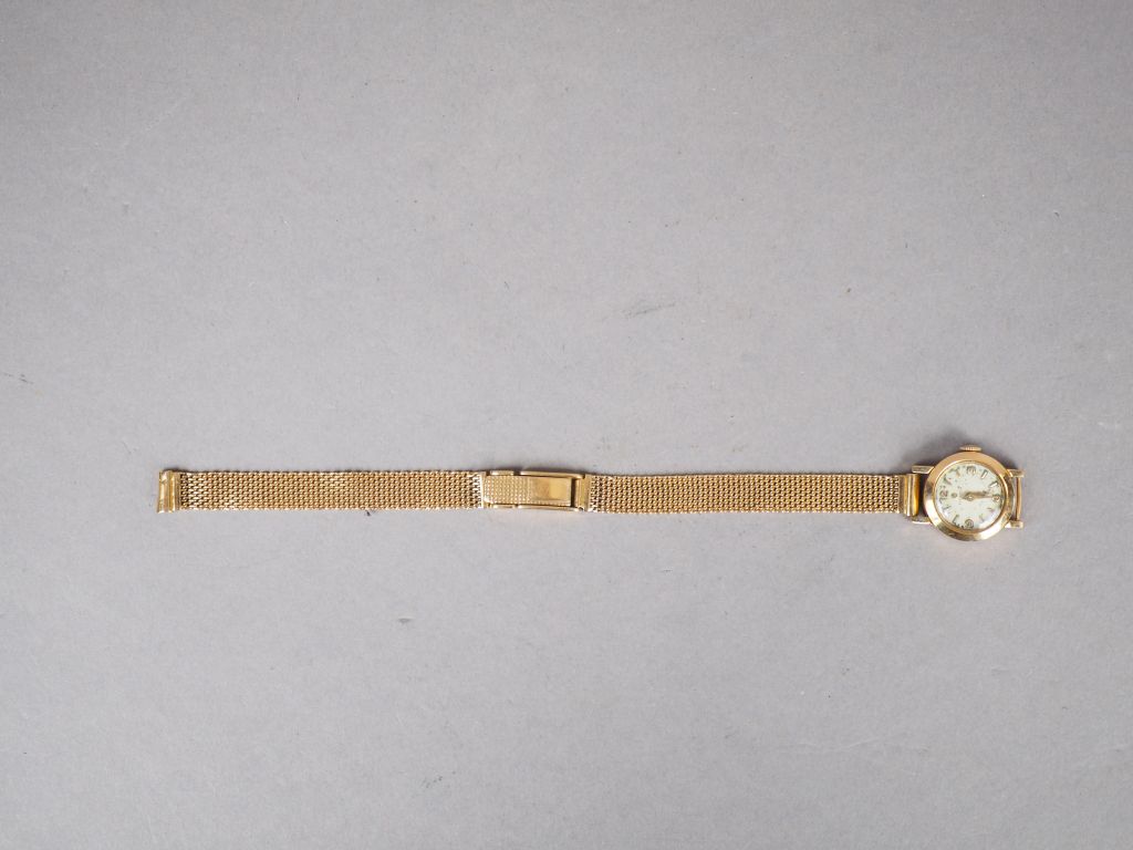 ELECTION. Montre de dame, boitier et bracelet en or jaune. Poids tel. 21,72 g (bracelet accidenté, cadran piqué)