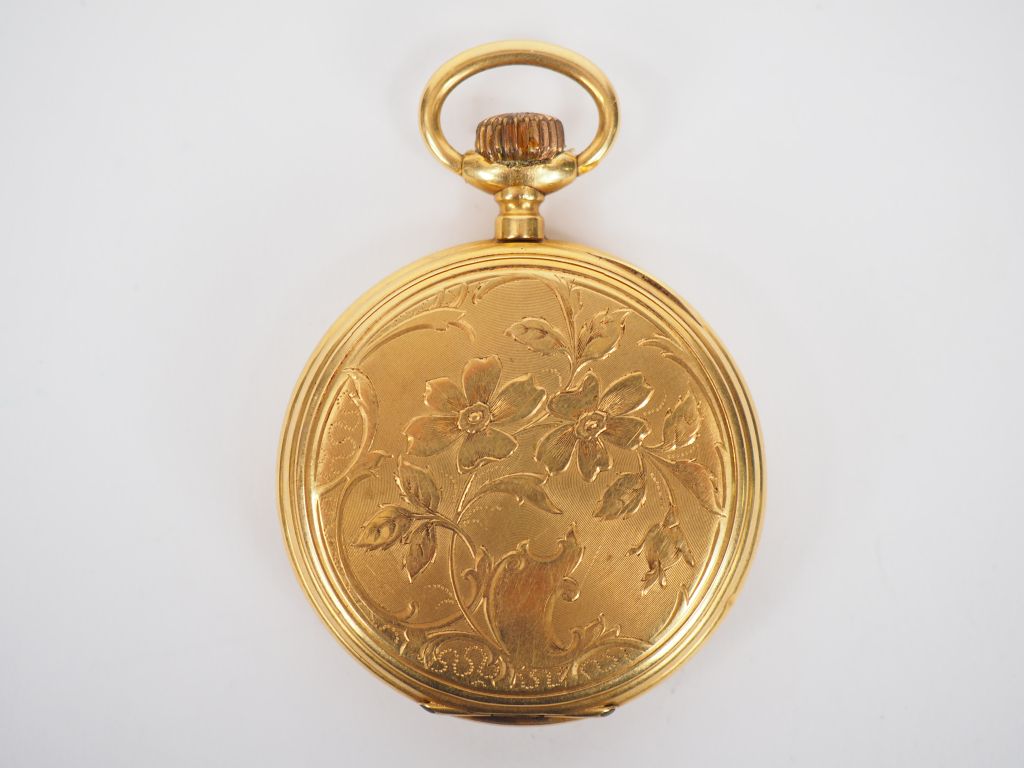 Etui de montre en or jaune. Le revers, à décor de fleurs. Poids tel. 25,32 g (manque le mécanisme)