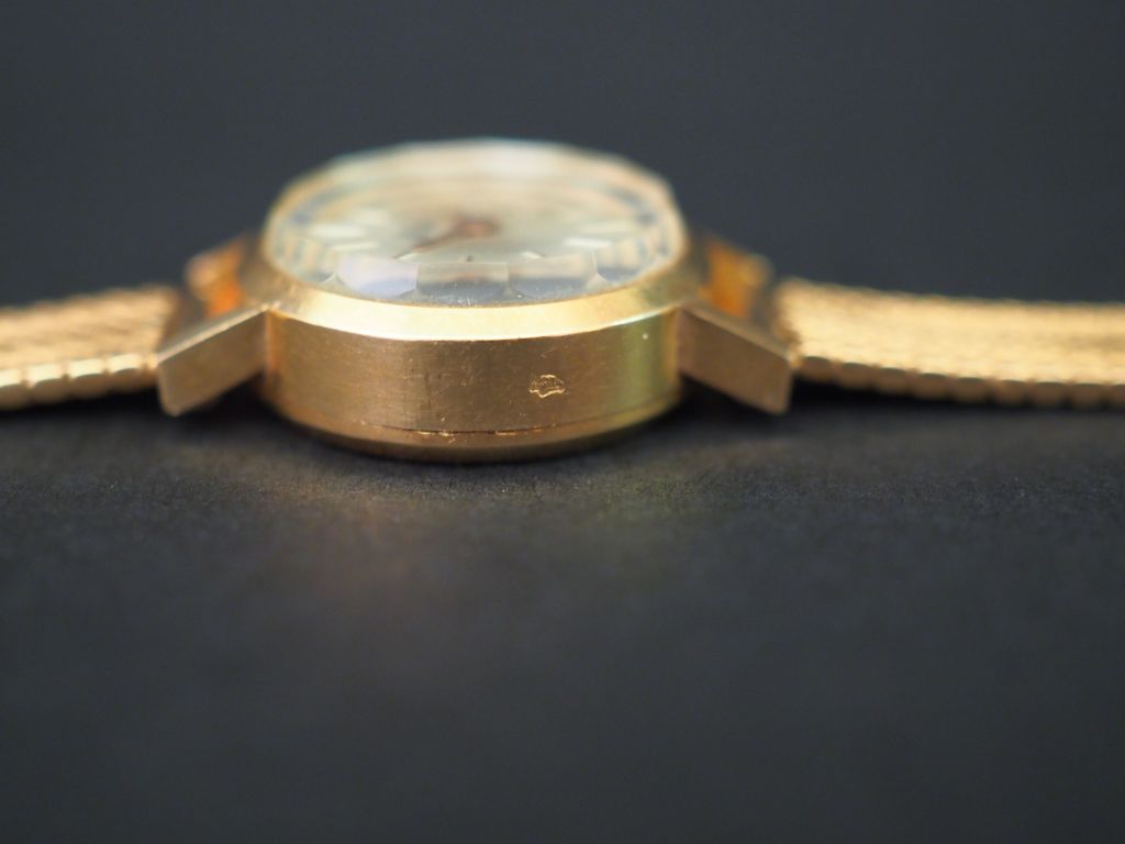 GIRARD PEREGAUX Montre bracelet de dame, boitier et bracelet en or jaune. Cadran rond à index bâtons pour les heures. Bracelet souple, maille plate. Signée sur le cadran. Numérotée au revers 42570. Long. 15 cm Poids tel. 20,32 g