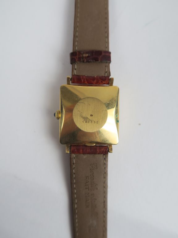JAEGER. Montre d'homme, boitier en or de forme rectangulaire. Poids tel : 37,7 g