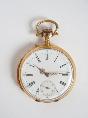 Montre de gousset en or jaune, cadran émail, chronomètre. Poids tel: 71,4gr