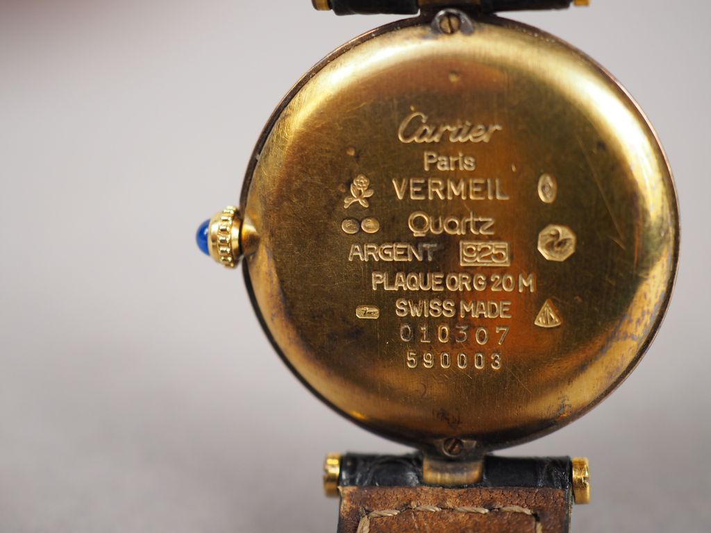 MUST de CARTIER. Montre de dame en vermeil, bracelet cuir d'origine. Signée et numérotée 010307. Diam. 30 mm Poids tel. 28,60 g