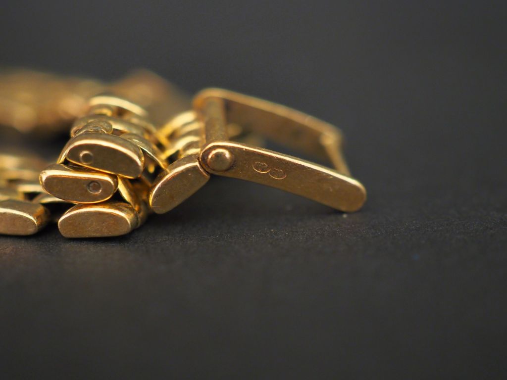 OMEGA Montre bracelet de dame, boitier et bracelet or jaune. Cadran rond à fond champagne et chiffres romains pour les heures. Bracelet souple, maille plate. Signée. Numérotée sur le bracelet 795. 152. OA. Long. 17 cm Poids tel. 42,50 g