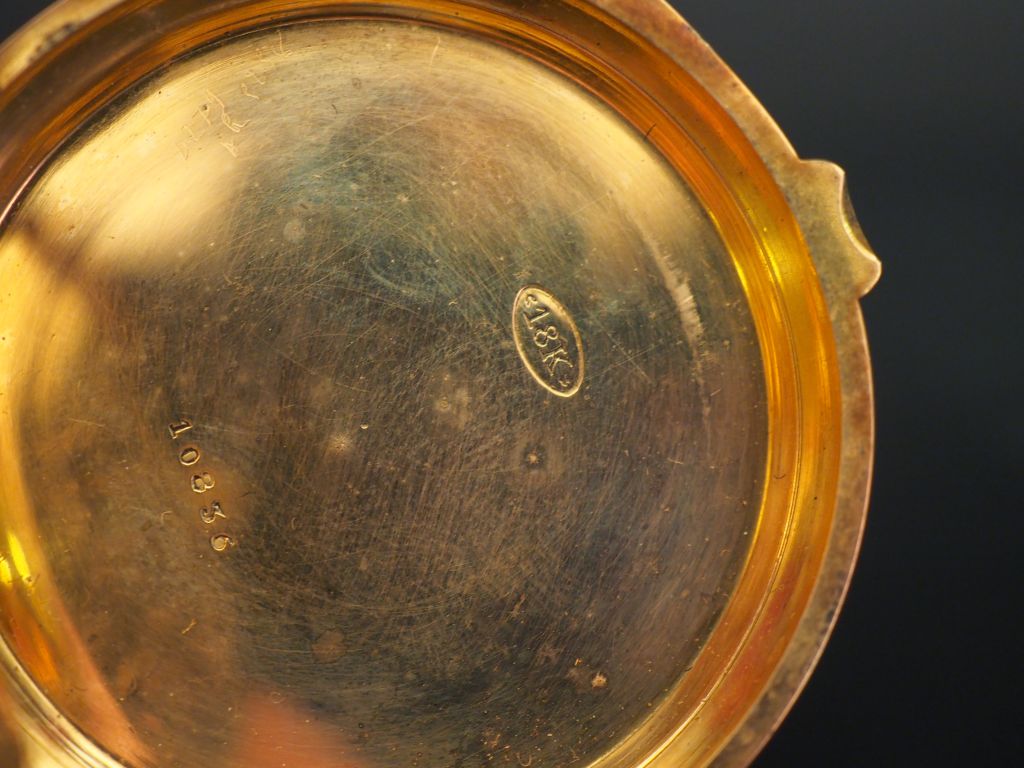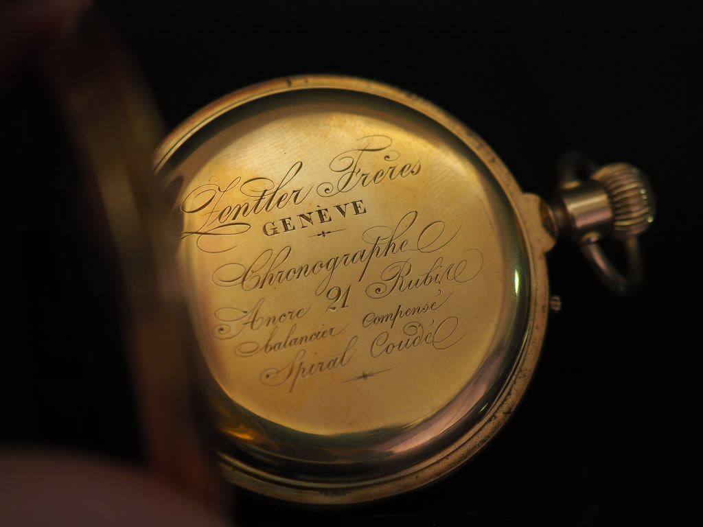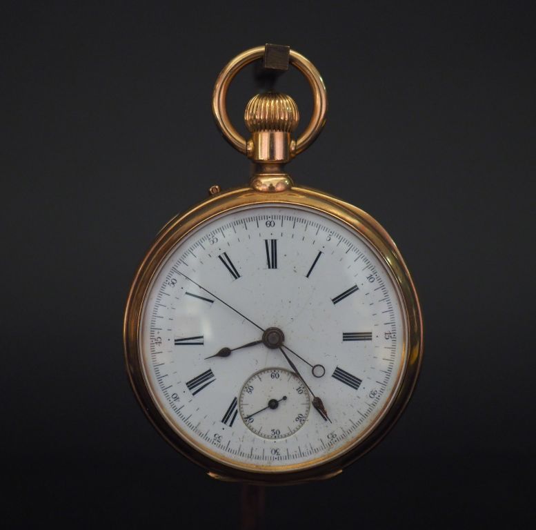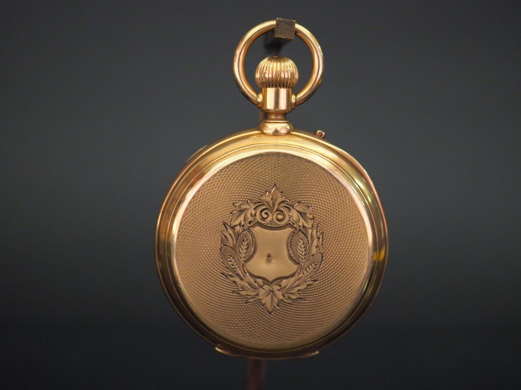 ZENTLER Frères, Genève Montre de gousset en or jaune. Cadran à chiffres romains pour les heures et arabes pour les minutes. Compteur pour les secondes à 6h. Le revers, à décor de cartouche feuillagé. Double fonds en or. Diam. 50 mm Poids tel. 98,59 g