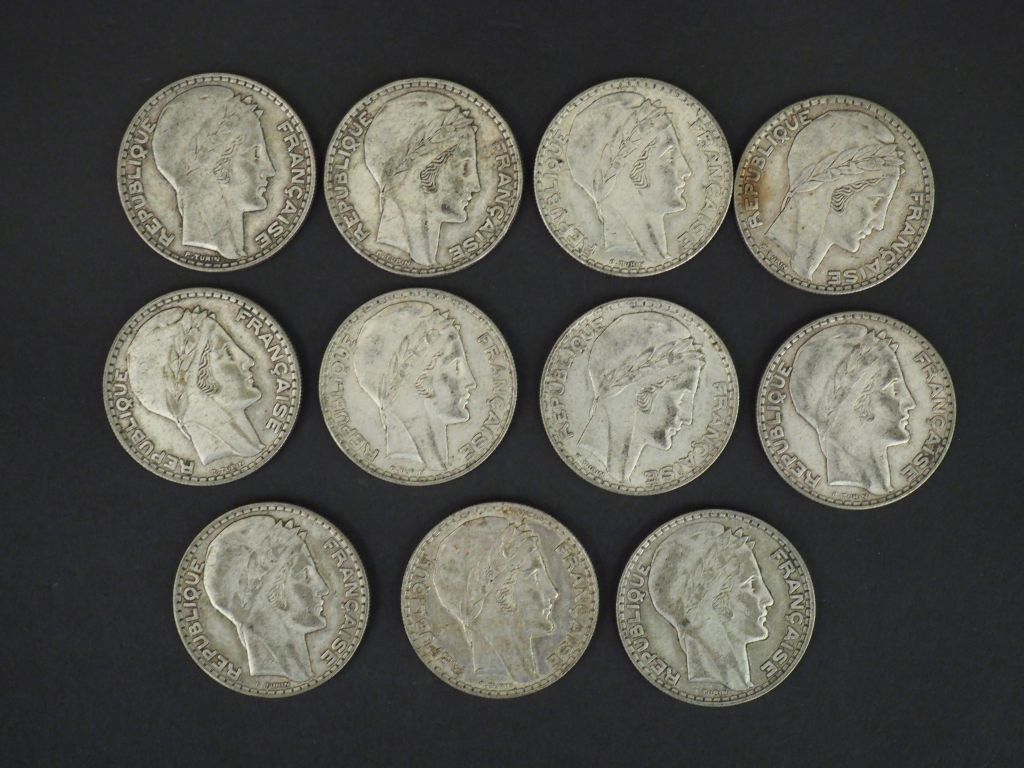 Ensemble de vingt-sept pièces de 20 francs en argent. Poids. 539 g