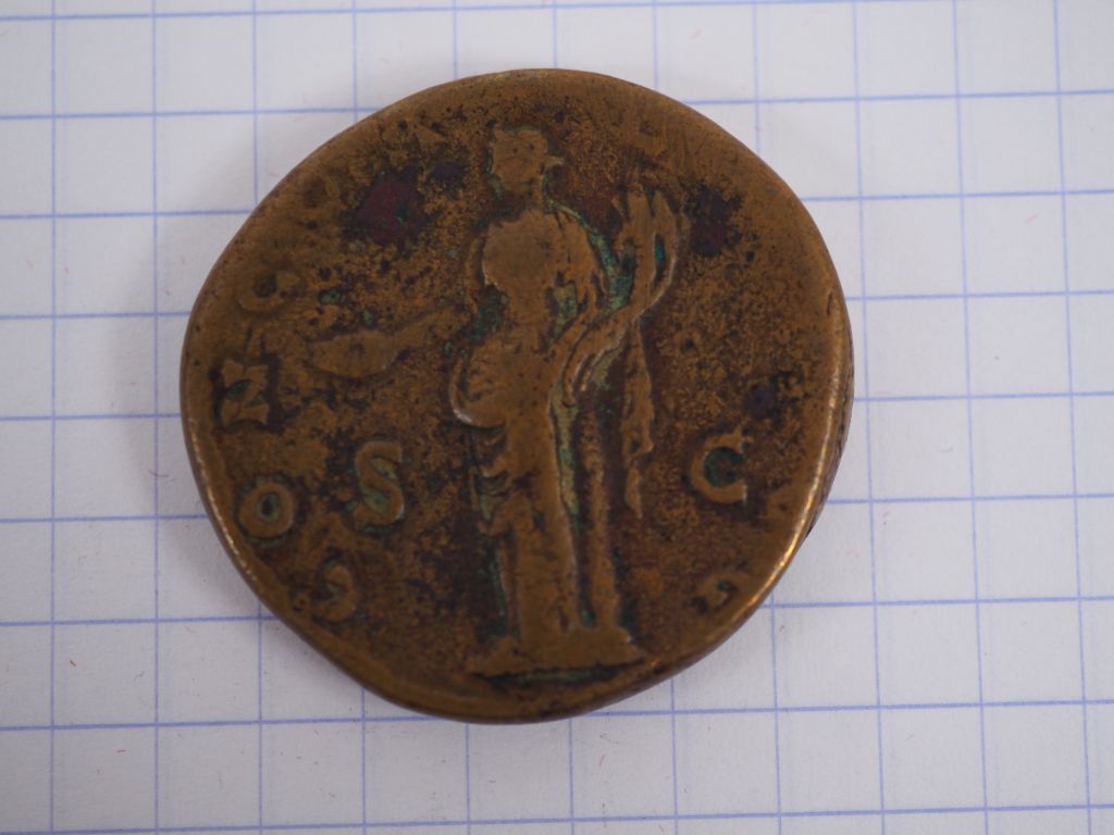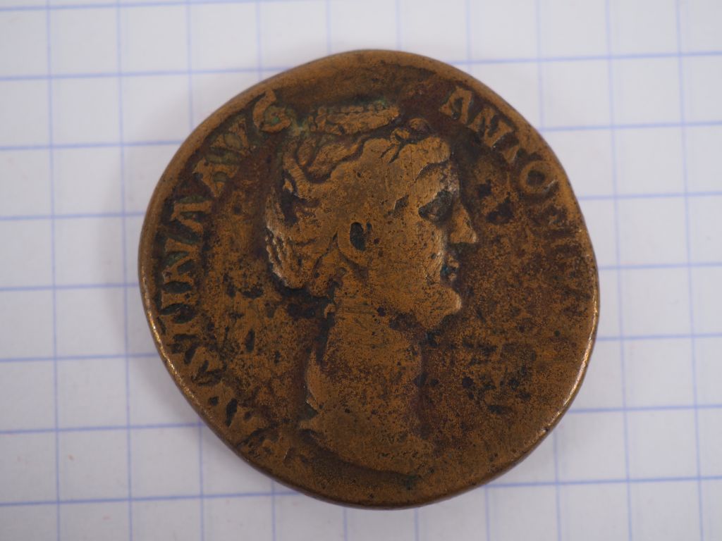 Faustine la mère (+ 141 apr. J.-C.), sesterce, A/ FAVSTINA AVG ANTONI[NI AVG PII P P, tête à dr., R/ CONCORDIA, la Concorde debout. B