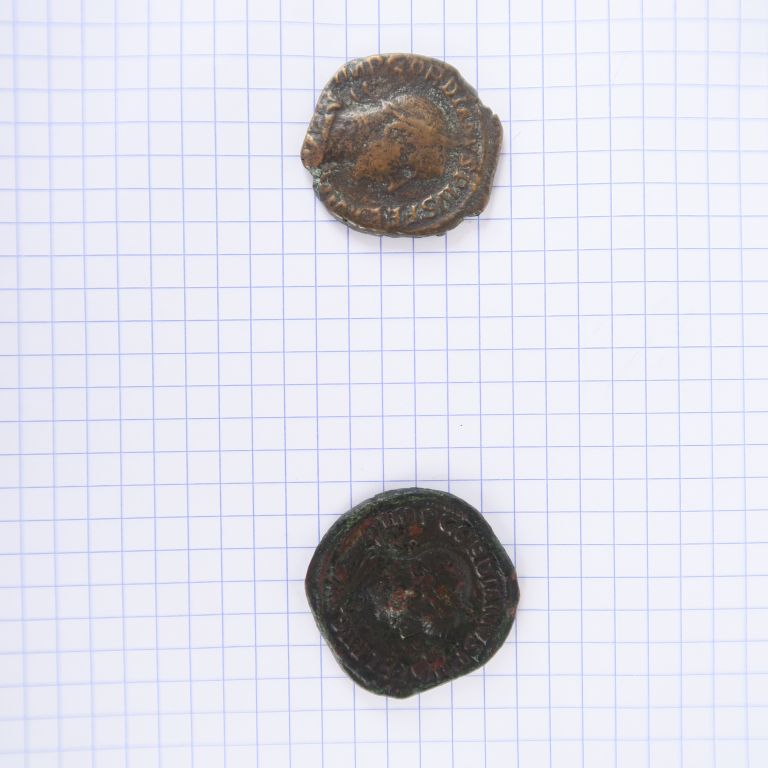 Gordien III (238-244 apr. J.-C.), lot de deux sesterces, R/ Fortuna, et R/ P M TR P II COS II P P S C, Gordien debout. TB.