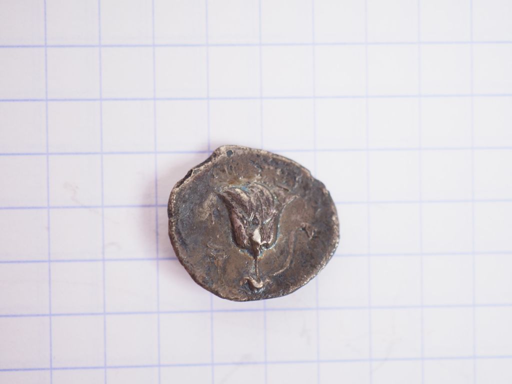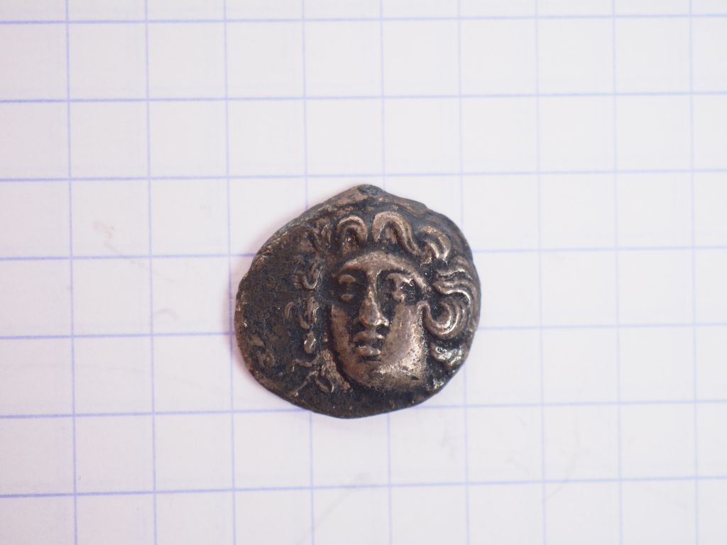Iles de Carie. Rhodes. Drachme d’argent. III-IIe s. av. J.-C. A/ Tête d’Hélios de trois quarts de face à g. R/ Rose, caducée et légende en grec. TB à TTB