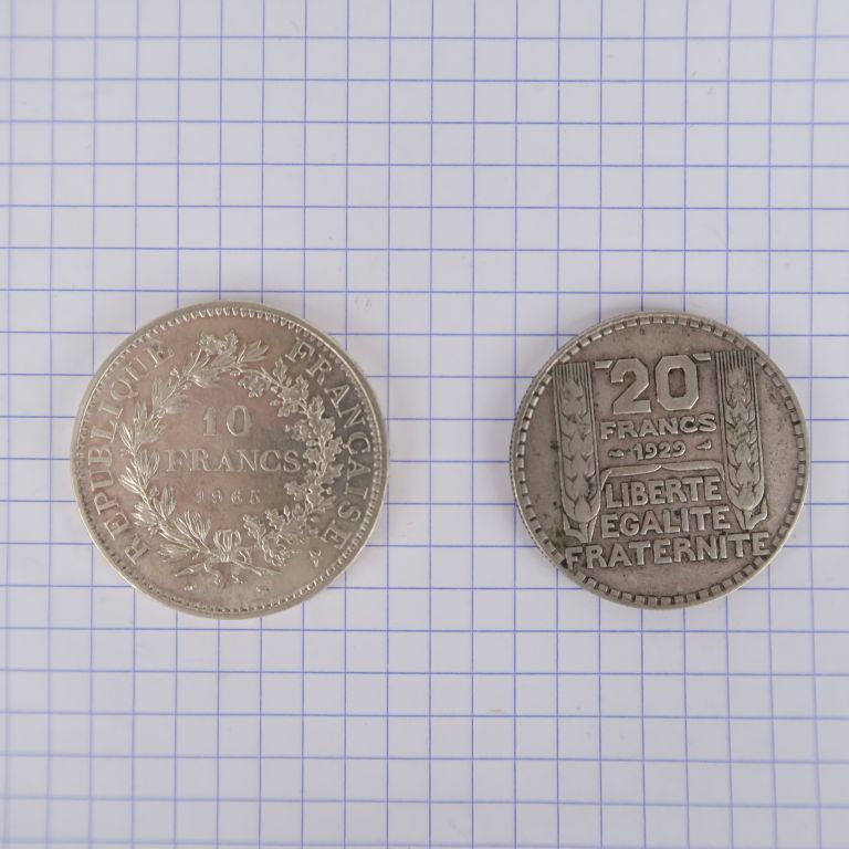 Lot de Lot de deux monnaies en argent : 20 francs Turin 1929. TB et 10 francs au prix de 10 à 20 € en vente aux enchères par l'hôtel des ventes Primardeco