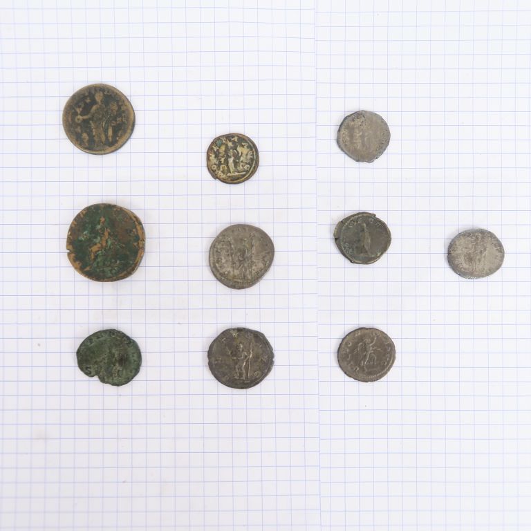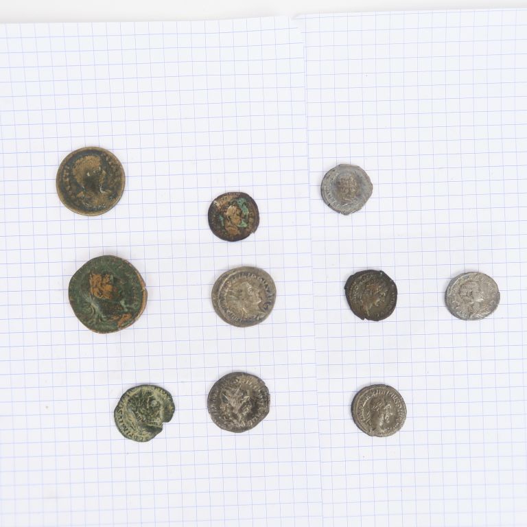 Lot de dix monnaies romaines dont denier de Plautille (+211 apr. J.-C.). B-TTB.