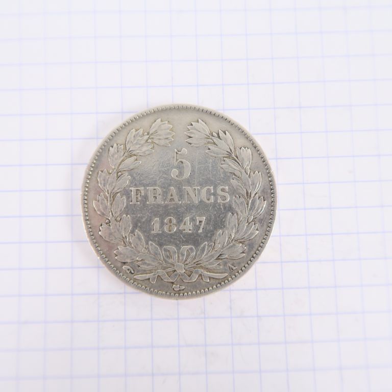Lot de Louis-Philippe Ier, 5 francs, 1847 A, Paris. TB au prix de 20 à 30 € en vente aux enchères par l'hôtel des ventes Primardeco