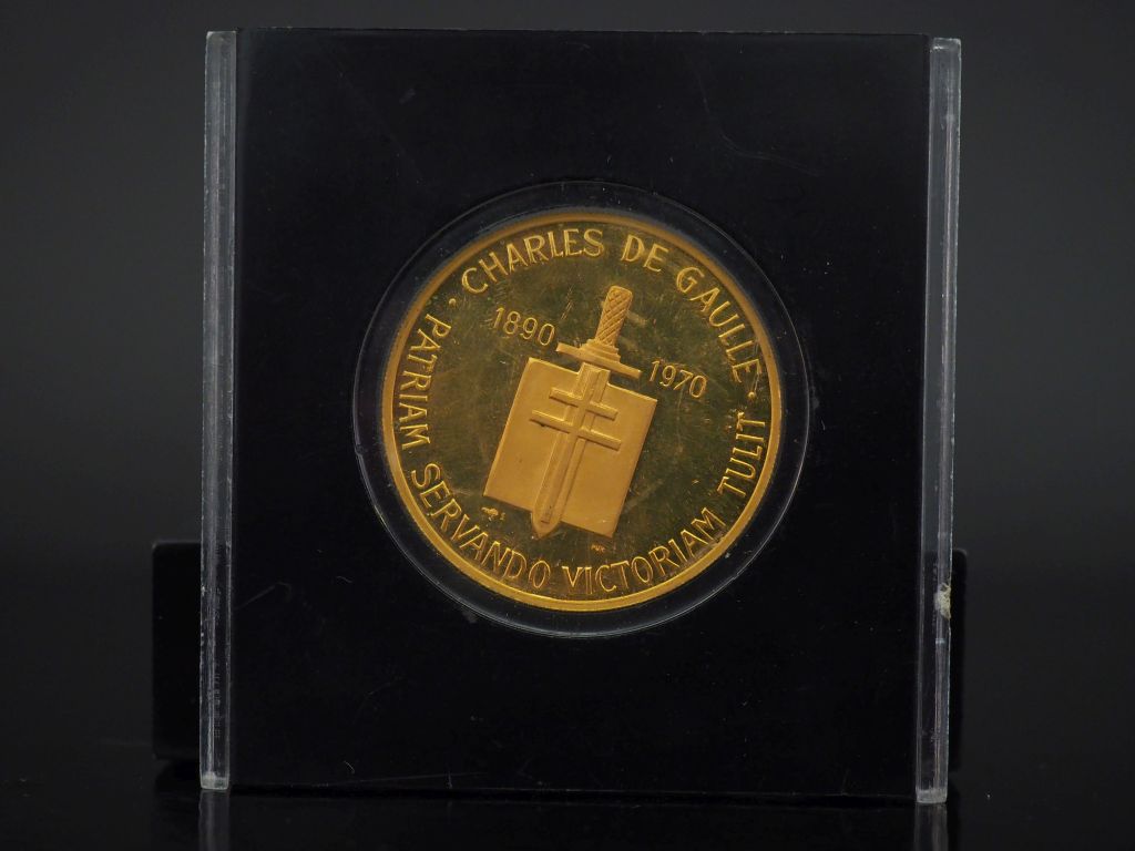 Médaille commémorative du Général de Gaulle en or. Frappée par la Monnaie de Paris. Poids. 16,27 g FRAIS ACHETEURS 10% HT.