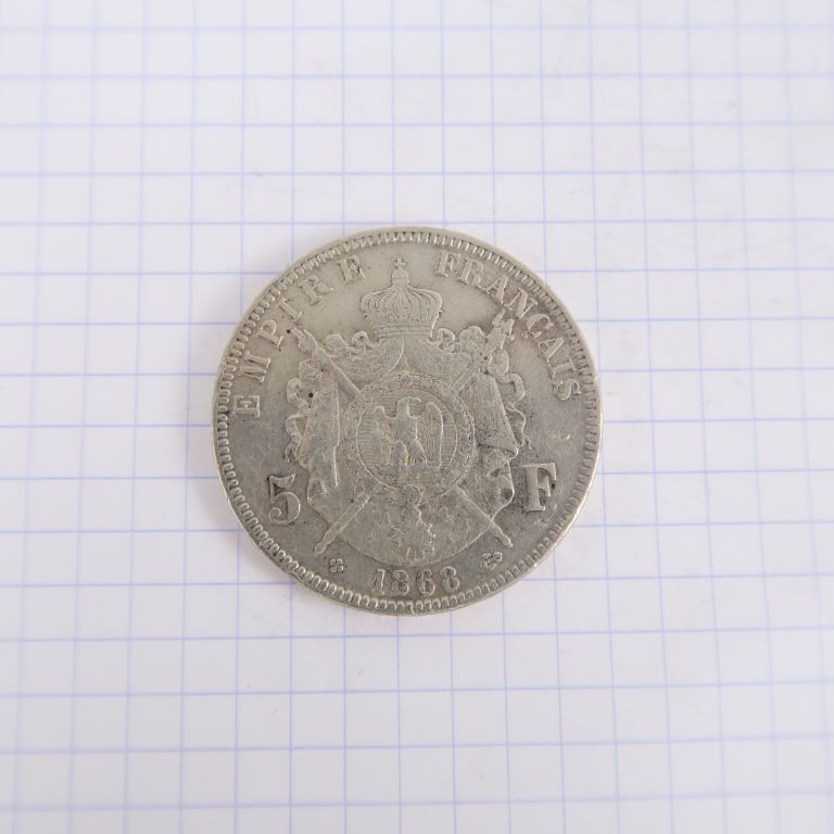 Lot de Napoléon III, 5 francs, 1868 BB, Strasbourg. TBB. au prix de 30 à 50 € en vente aux enchères par l'hôtel des ventes Primardeco