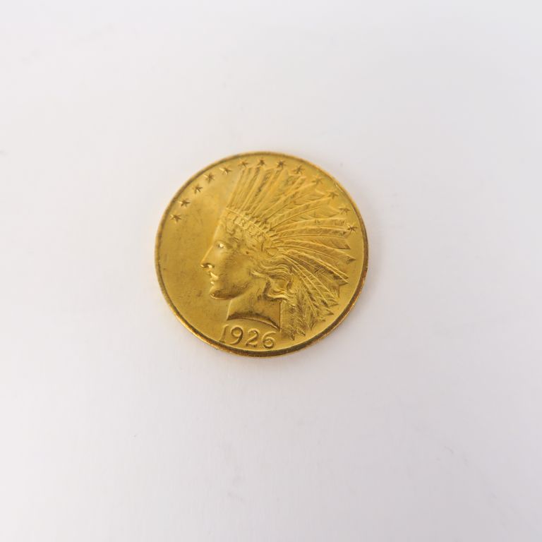 Pièce de 10 dollars or tête d'indien, 1926. FRAIS ACHETEURS : 5% TTC