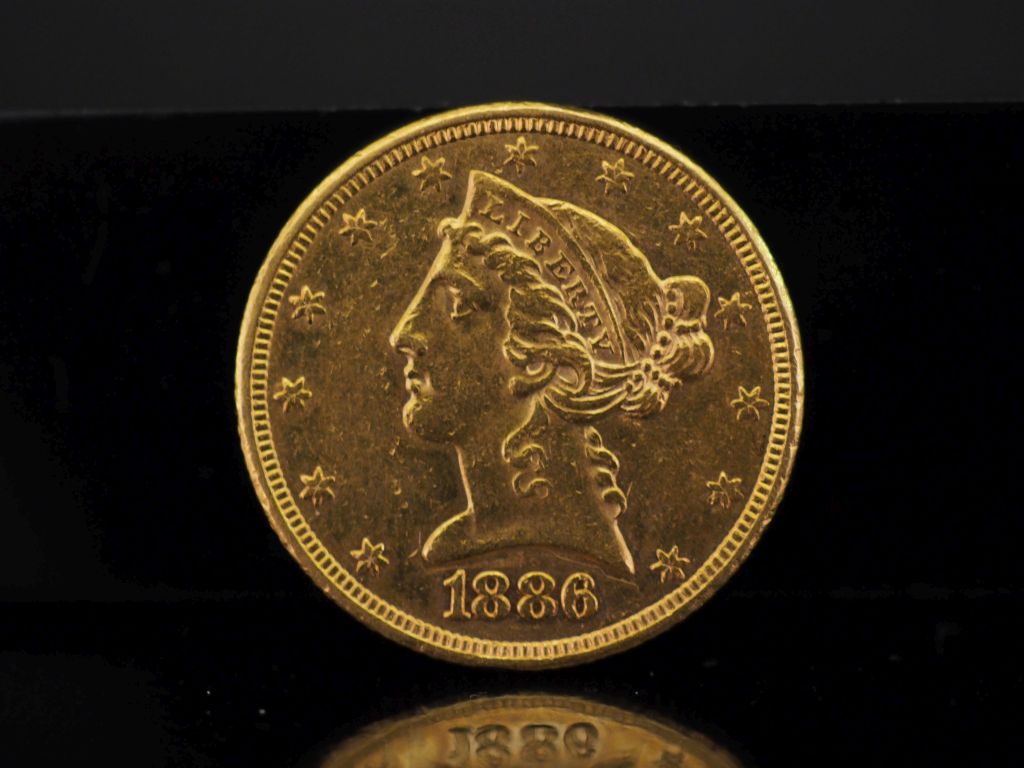 Pièce de 5 Dollars or, 1886. FRAIS ACHETEURS 10% HT.