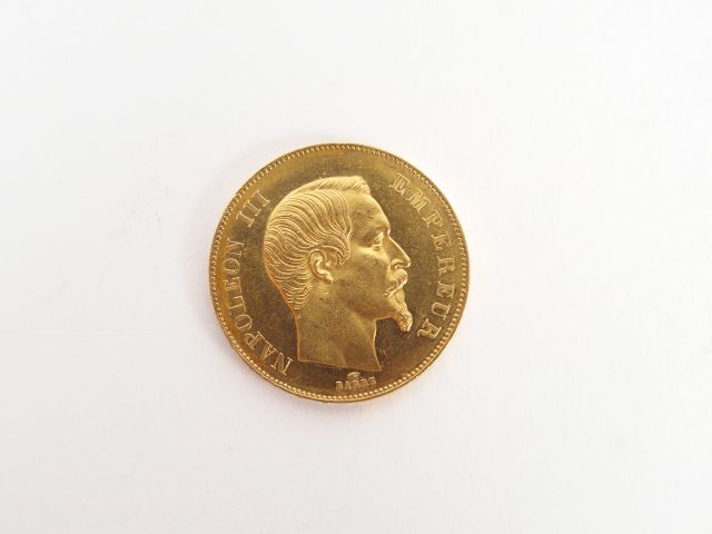 Pièce de 50 Francs or Napoléon Empereur tête nue, 1855-A. Poids: 16,2gr