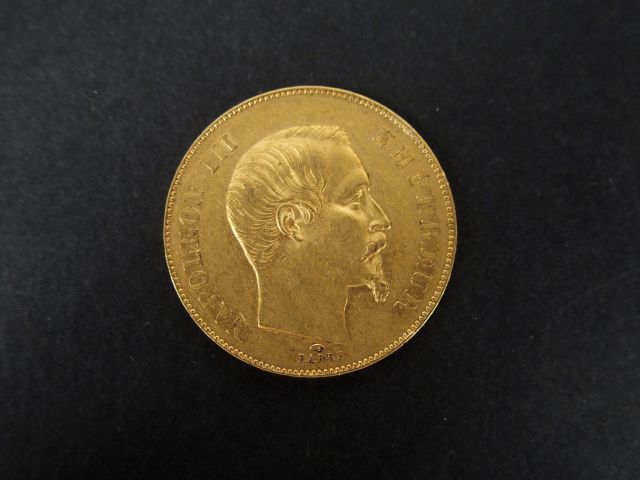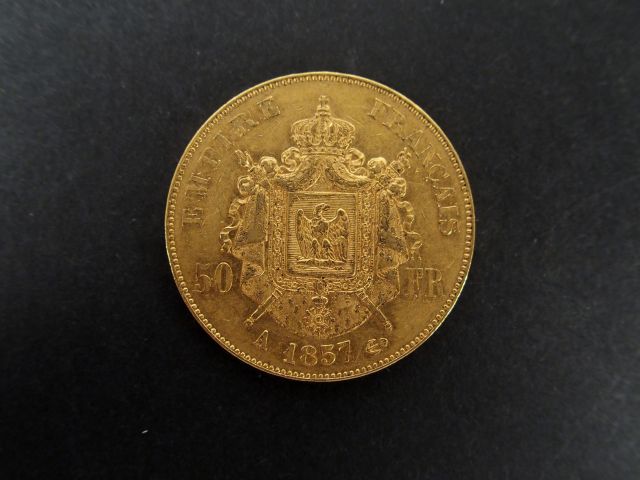 Pièce de 50 Francs or, Napoléon III tête nue, 1857-A. Poids: 16,1gr