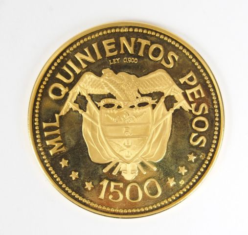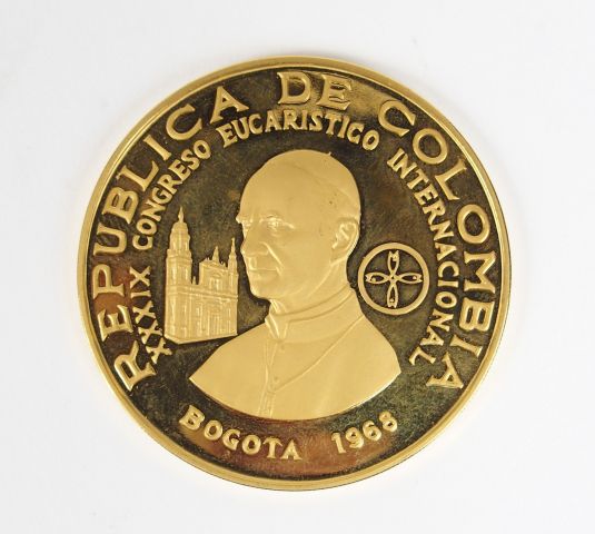 Pièce or 1500 Pesos, 900/1000e, République de Colombie, Congrès eucharistique international de Bogota 1968. Diam. : 50mm Poids: 64,6gr