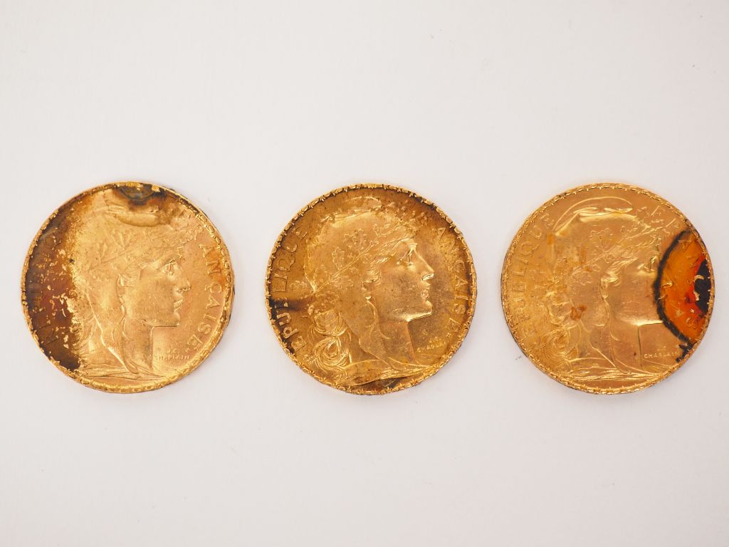 Trois pièces de 20 Francs or, 1905, 1909 et 1913. FRAIS ACHETEURS 5% TTC