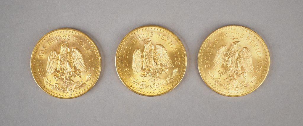 Trois pièces de 50 Pesos or. FRAIS ACHETEUR : 5% TTC