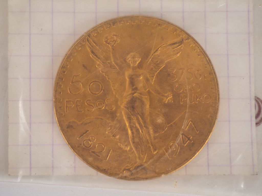 Une pièce de 50 Pesos or. FRAIS ACHETEURS 10% HT.