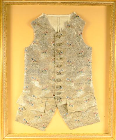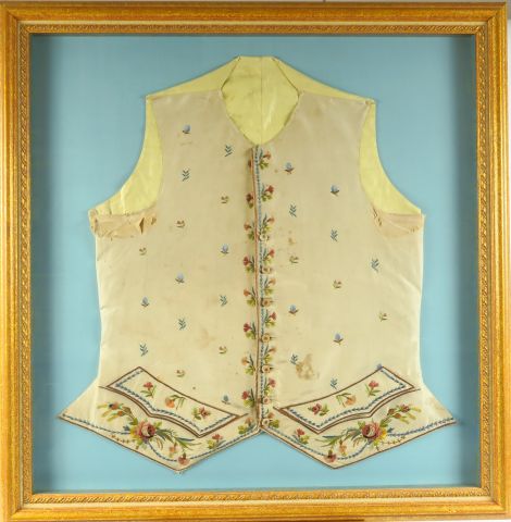 Lot de 3 gilets Louis XVI en soie brodée, encadrés au prix de à € en vente aux enchères par l'hôtel des ventes Primardeco
