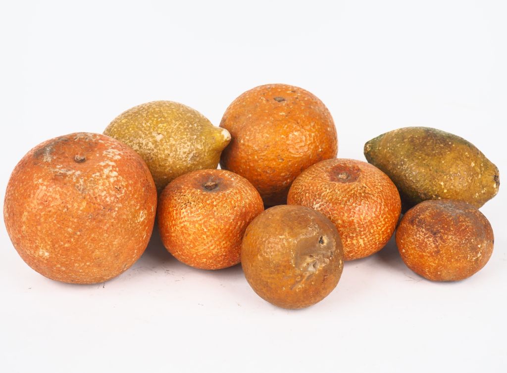 16 fruits XIXème en pierre polychrome : figues, raisins, prunes et poi lot n°3 Estimation : 100 - 150 €