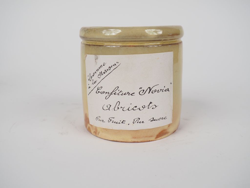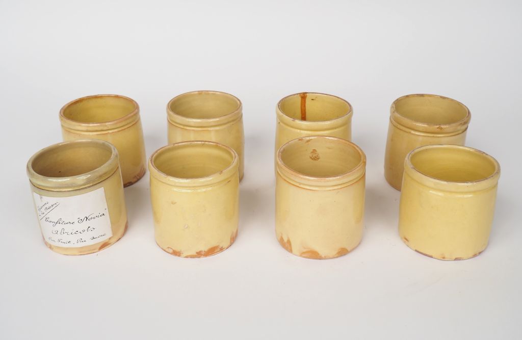 Lot de 8 pots à confiture en terre vernissée ocre. au prix de 40 à 60 € en vente aux enchères par l'hôtel des ventes Primardeco