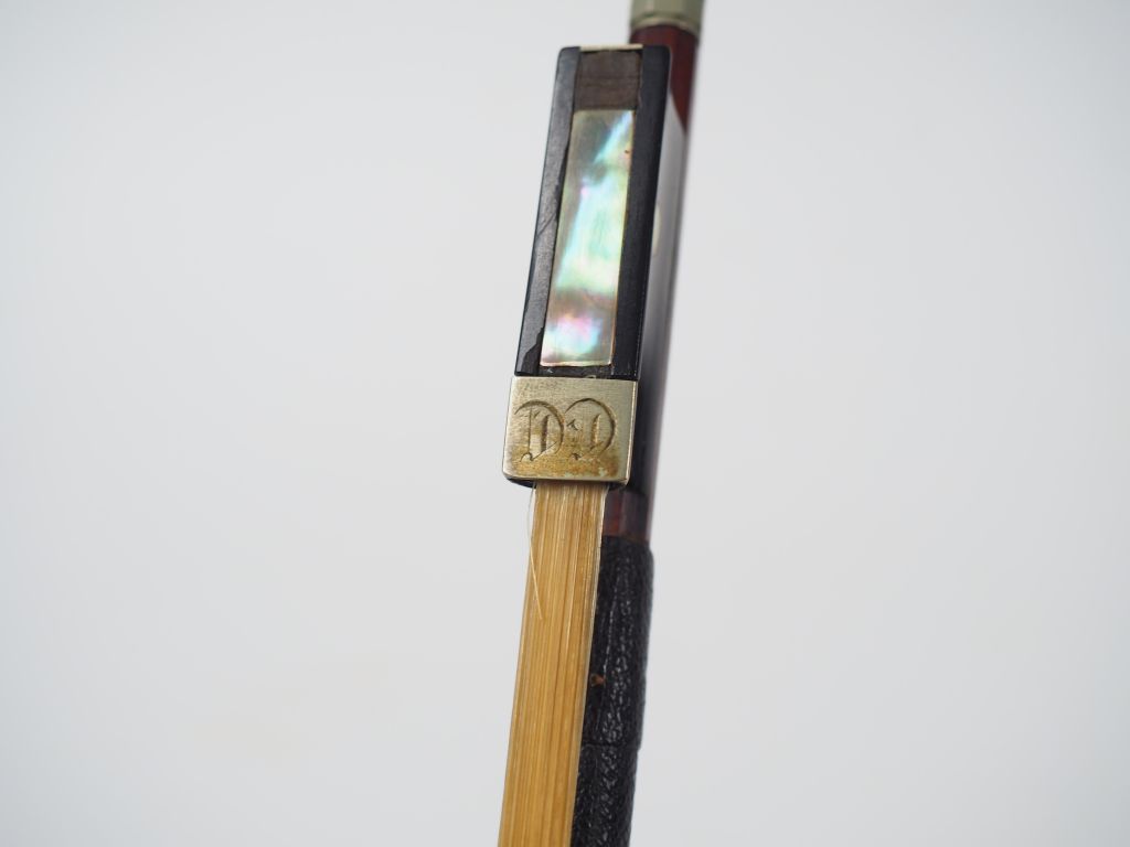 Archet de Violon de 55g en bois de pernambouc de l'atelier de : MARTIN Jean Joseph, dans toutes ses parties principales, non signé, montée maillechort, en bon état. Petit talon manquant, fractures et éclats hausse, petit éclat mortaise vis et écrou, grattes et éclats tête. Expert : JEAN-FRANÇOIS RAFFIN, YANNICK LE CANU et SYLVAIN BIGOT