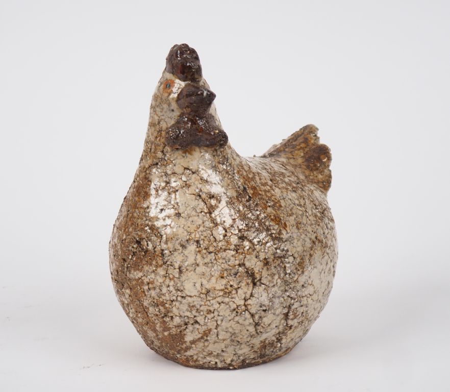 ATHEZZA. Sujet en céramique polychrome figurant une poule. Signé. H. 17 cm. (Choc).