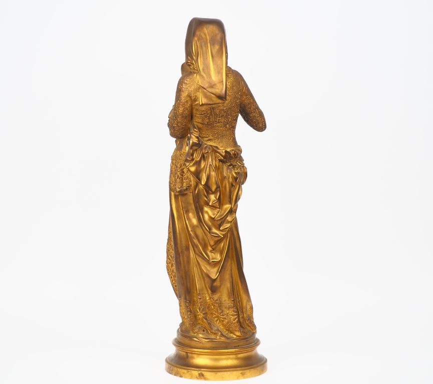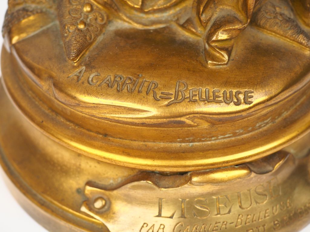 CARRIER-BELLEUSE. "La liseuse". Grande sculpture chryséléphantine en bronze doré et ivoire. Signée , porte un cartouche sur son socle "Liseuse, Grand Prix du Salon". Certificat CIC. H. 62 cm