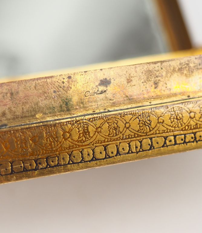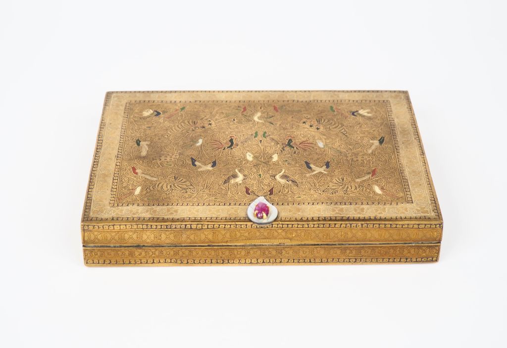 CARTIER. Minaudière en vermeil et émaux polychromes à décor de style persan. Signée (signature en partie éffacée) Dim. 15,5 x 11 x 2,5 cm