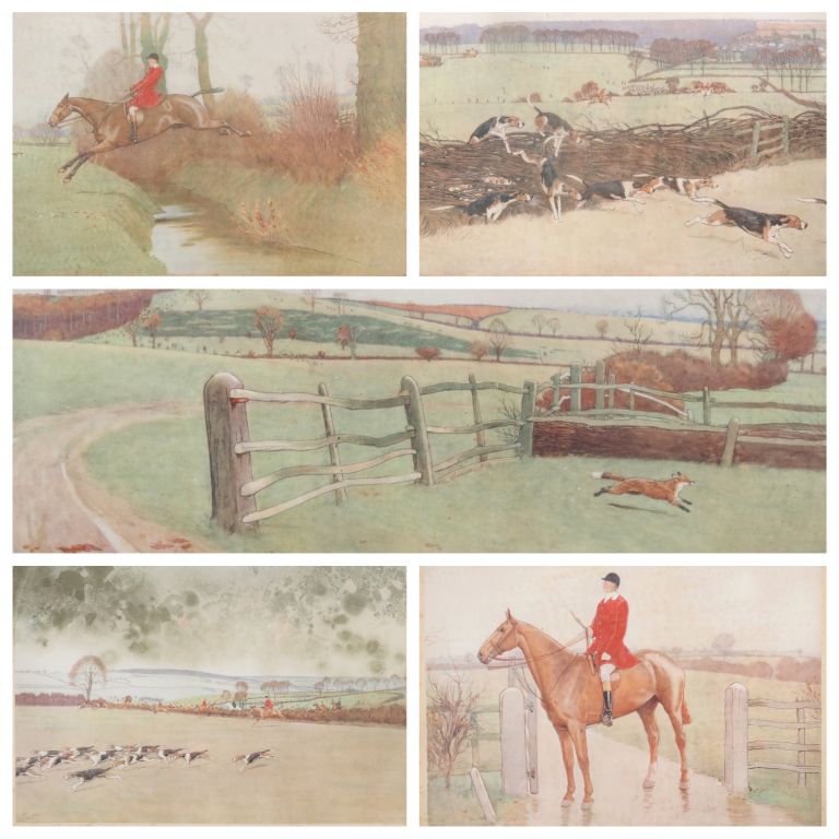 Cecil ALDIN. Suite de 5 gravures en couleurs signées et numérotées. Dim. (à vue) : 42 x 65 cm. (Rousseurs et tâche, une en mauvais état).
