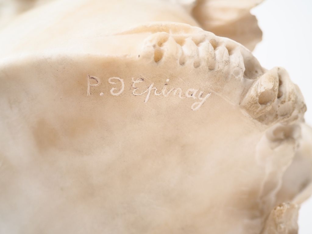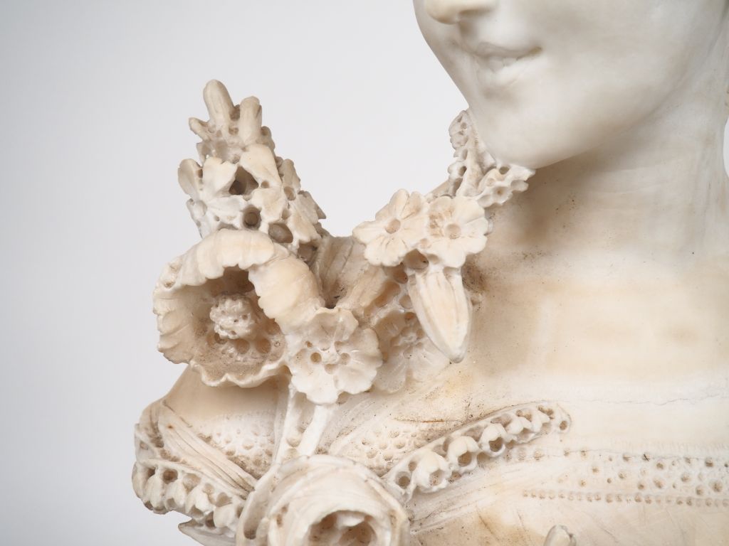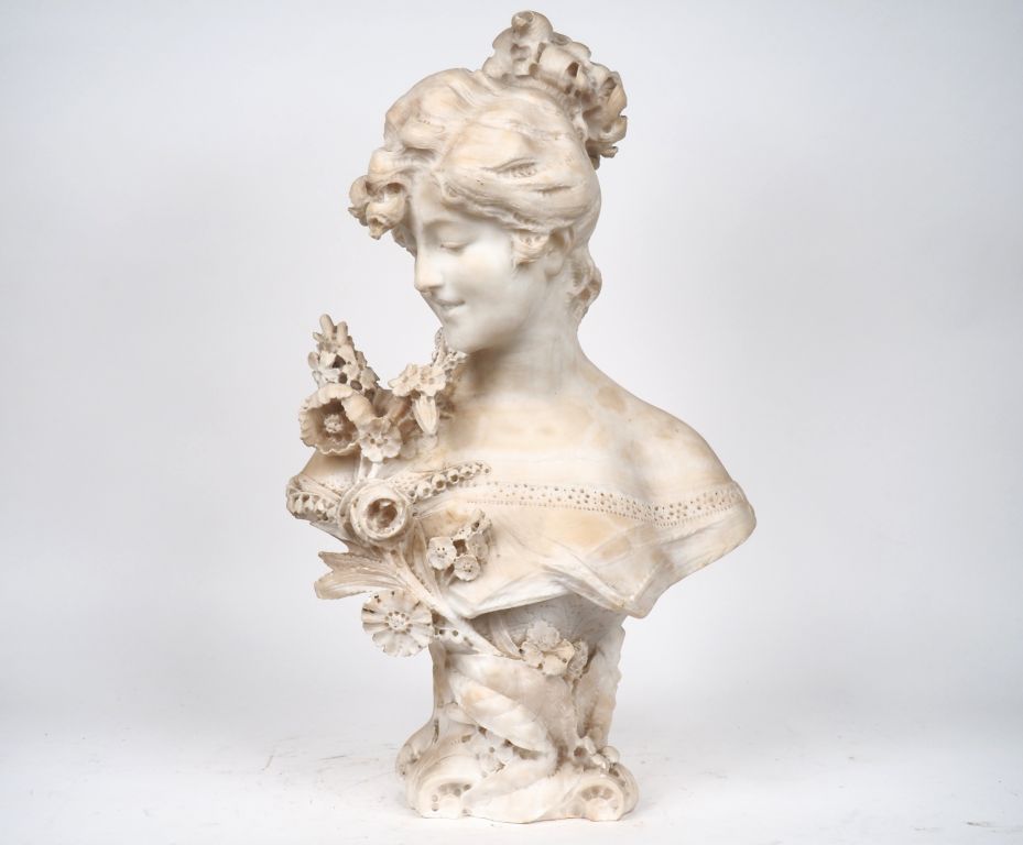 Charles PROSPER d'EPINAY. "Elégante". Sculpture en albâtre. Signée. H. 66 cm (fissure peu profonde)