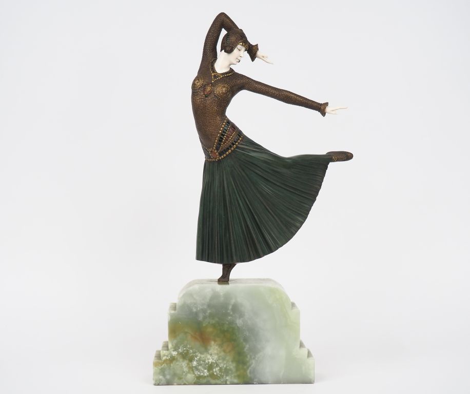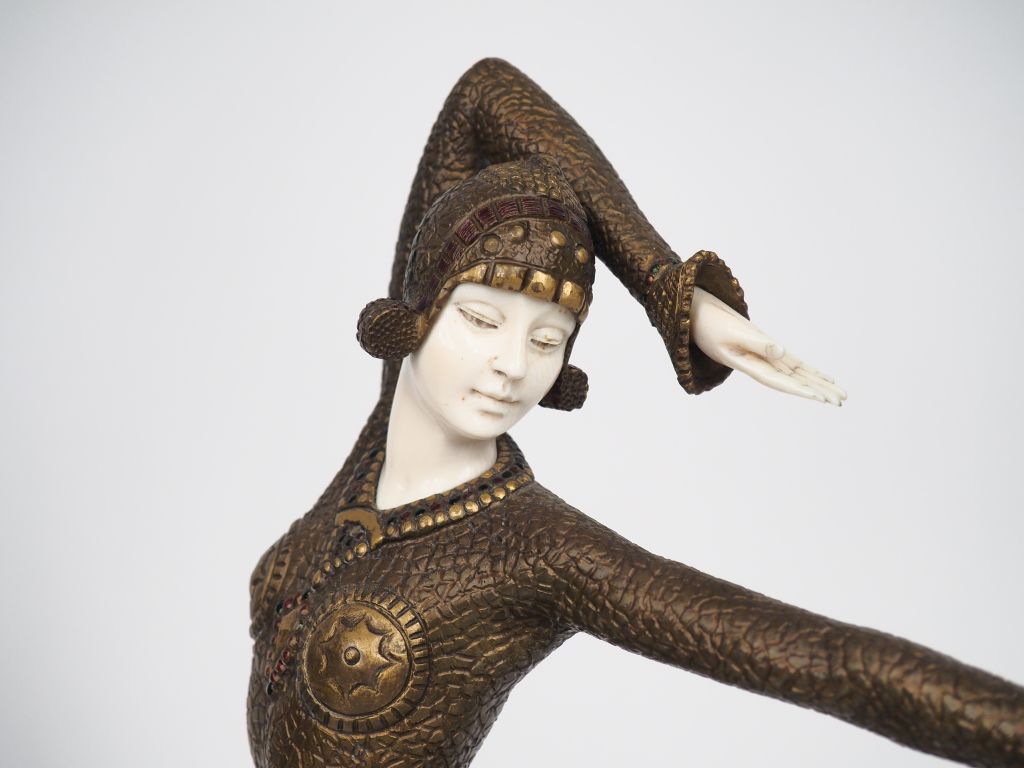 CHIPARUS. "Ayouta" Sculpture chryséléphantine en bronze polychrome et ivoire , signée sur le socle en onyx H. 47,5 cm H. sans le socle : 35 cm H. du socle : 12,5 cm Certificat CIC en cours d'obtention.