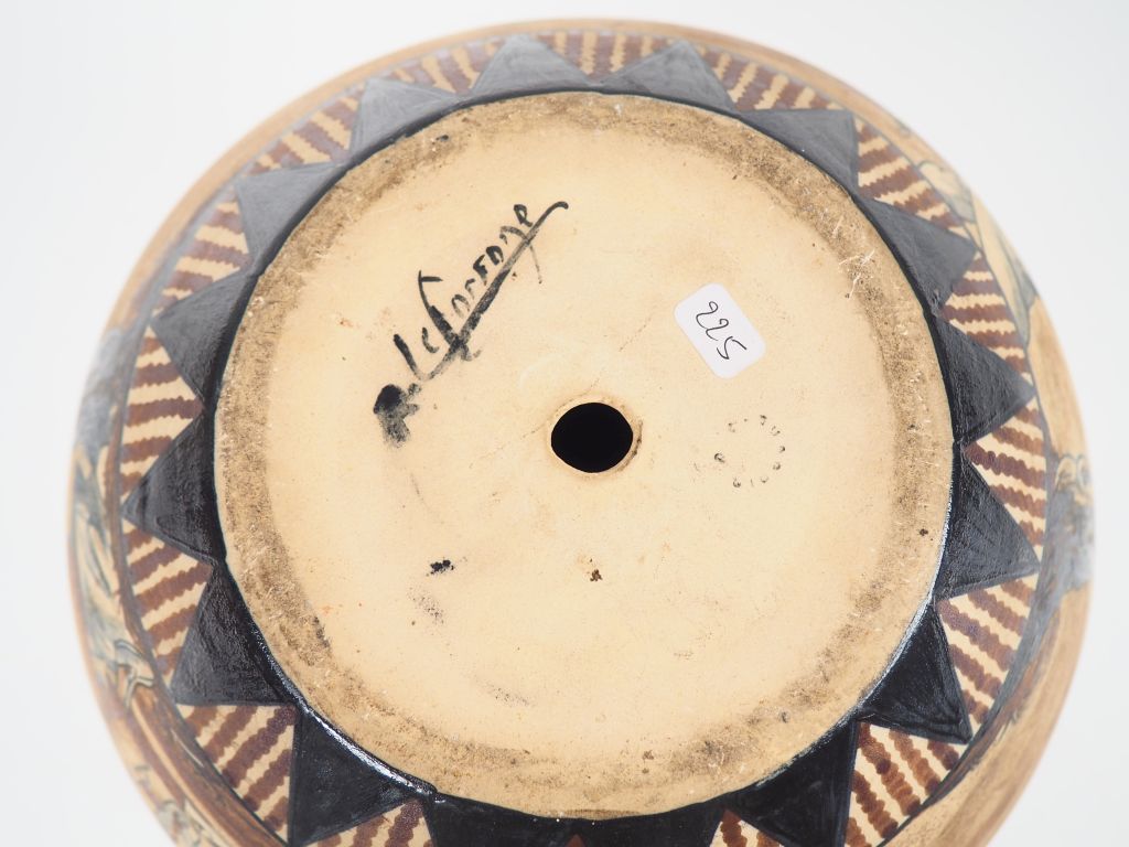 CIBOURE. Grand vase ovoide à anses en céramique, à décor de pelotari et de fandango. Signé Le Corrone H. 31 cm