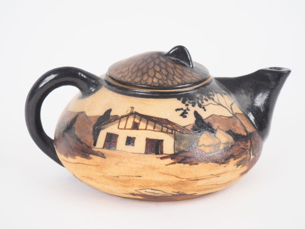 CIBOURE. Théière en céramique à décor de paysan et de ses bœufs devant la ferme signé Garcin VE CIBOURE.