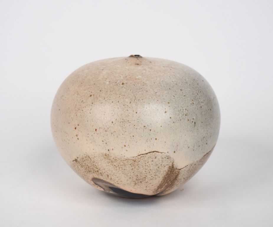 Claude CHAMPY. Vase soliflore en grès beige, nuancé de noir. Signé H. 11 cm